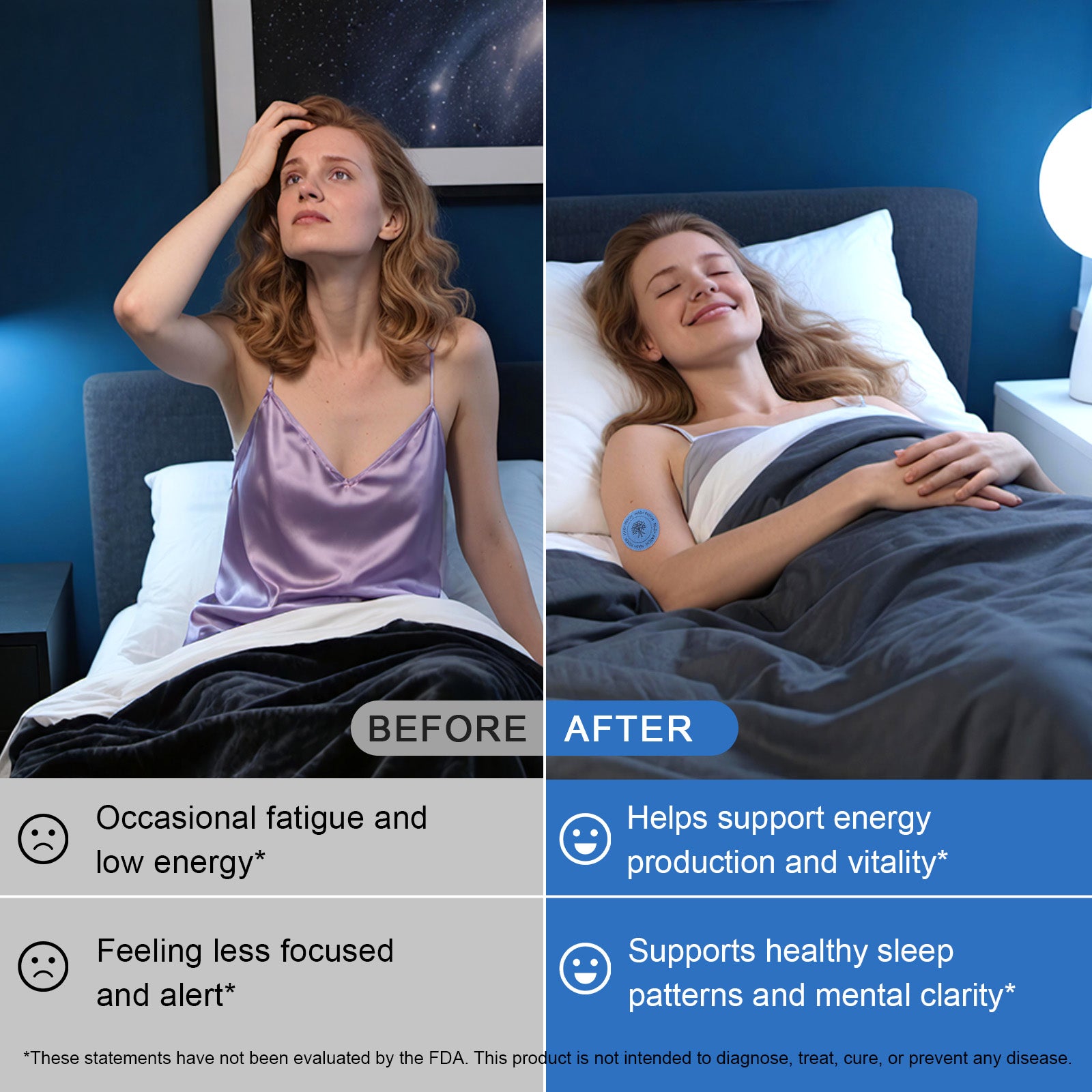 Answer 1: The patch delivers a blend of natural, soothing compounds that are absorbed through the skin, which gently promote relaxation without causing drowsiness, allowing you to engage fully in your daily activities.